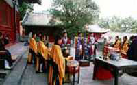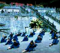 武當不僅是風(fēng)景勝地,還是道教名山。而且,武當?shù)奈湫g(shù)也非同小可,令武當山真正名揚天下的是一代宗師張三豐,他創(chuàng)立的武當派與嵩山少林派齊名。武當武術(shù)與道教淵源極深,道士修煉學(xué)道,往往伴以習(xí)武,武當武術(shù)以養(yǎng)身練功、防身保健為宗旨,以柔克剛,后發(fā)制人,自成一派,被稱為“內(nèi)家拳派”。