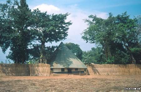 這座過去的王宮,屋頂由棕櫚樹編織而成,一根根粗粗的原柱子縱橫交錯,支撐著整個皇陵,不用一個釘子,不用一條鋼筋,交叉處全用柔韌的藤條捆扎,歷經數十年,牢固如初。 柱子全用當地的一種樹皮包裹著,且每根柱子都代表著王國的一個家族。由于建筑用的棕櫚葉經過嚴格挑選和特殊處理,這種茅建筑能防水遮陽,能保持室內常年涼爽宜人,且草味清香,具有驅蟲避邪之效。根據當地傳統習俗,在建造這種住房期間,建筑師們必須遠離女色,婦女更是不能接近建筑物一步,否則室內將常年漏雨。