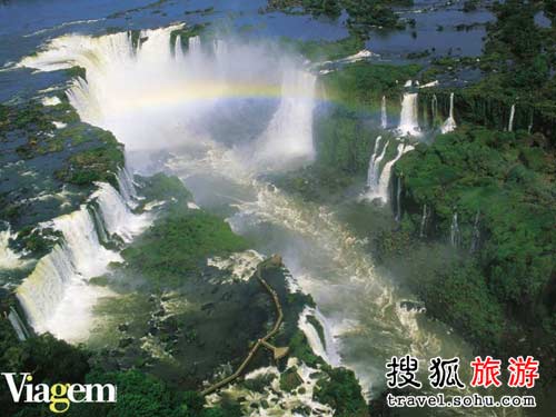 被譽(yù)為"南美第一奇觀"的伊瓜蘇瀑布是世界最大的瀑布之一。"伊瓜蘇"在當(dāng)?shù)赜〉诎踩说墓侠嵴Z中意為"大水"。伊瓜蘇瀑布位于阿根廷北部和巴西交界處、伊瓜蘇河下游,距伊瓜蘇河與巴拉那河匯流點(diǎn)約23公里。伊瓜蘇河發(fā)源于巴西南部,沿途匯集了大溪小流,穿過維多利亞山口,以雷霆萬鈞之勢朝巴西和阿根廷交界的平原奔騰。