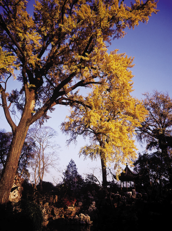 園林里,高大的銀杏已被秋風浸染