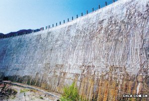 八十七神仙卷巖畫(huà)位于盤山腳下的石趣園景區(qū)內(nèi)。《八十七神仙卷》是唐代畫(huà)圣吳道子的名畫(huà),尺幅為328×36厘米。畫(huà)上繪有87個(gè)神仙從天而降,列隊(duì)行進(jìn),姿態(tài)豐盈而優(yōu)美。它是我國(guó)美術(shù)史上極其罕見(jiàn)的經(jīng)典傳世之作,代表了中國(guó)古代白描繪畫(huà)的最高水平,其藝術(shù)魅力堪與宋代張擇端的《清明上河圖》比肩。此畫(huà)曾流失國(guó)外,我國(guó)著名畫(huà)家徐悲鴻花巨資購(gòu)得,視之為生命。1942年,此畫(huà)被盜。經(jīng)多方努力,徐悲鴻打聽(tīng)到了畫(huà)的下落,再投巨資并搭上自己的數(shù)十幅畫(huà),方將之贖回。此畫(huà)后被收藏于北京徐悲鴻紀(jì)念館。1993年,玉石莊人聘請(qǐng)能工巧匠,以水庫(kù)石壩為載體,整體雕刻《八十七神仙卷》。壁畫(huà)長(zhǎng)168米,高18米,面積3200平方米,八十七位神仙神態(tài)悠然灑脫,飄忽而至,蔚為壯觀。徐悲鴻夫人廖靜文題字立碑:悲鴻生命,國(guó)之瑰寶。八十七神仙卷巖畫(huà)是世界上最大的獨(dú)幅人物群像石刻巖畫(huà),1996年被列入吉尼斯世界紀(jì)錄大全。