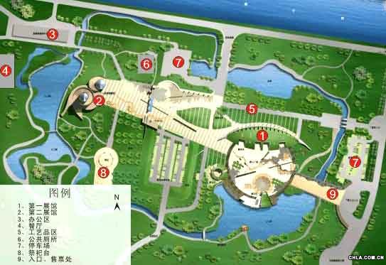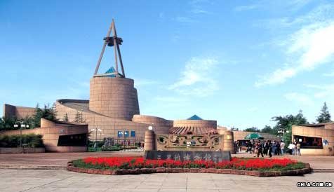 博物館主館建筑外形追求與地貌、史跡及文物造型藝術相結合的神韻、融原始意味和現代氣息為一體。館外環境布局巧妙,匠心獨具,園內綠草如茵,湖光島影,充分體現了博物館“館園結合”之特色。