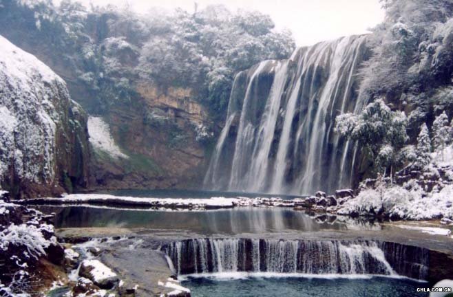 黃果樹風(fēng)景名勝區(qū)以其雄奇壯闊的大瀑布、連環(huán)密布的瀑布群而聞名于海內(nèi)外,并享有“中華第一瀑”之盛譽(yù)。黃果樹風(fēng)景名勝區(qū)位于貴州西線旅游中心安順市西南45公里處,鎮(zhèn)寧布依族苗族自治縣境內(nèi),東北距貴州省會貴陽市150公里,有滇黔鐵路、株六復(fù)線鐵路、黃果樹機(jī)場、320國道、貴(陽)黃(果樹)高等級公路貫通全境,新建的清(鎮(zhèn))黃(果樹)高速路直達(dá)景區(qū)。景區(qū)以黃果樹瀑布為中心,以瀑布、溶洞、地下湖為主體。 ![]() 著名的黃果樹大瀑布,是貴州第一勝景,中國第一大瀑布,也是世界最闊大壯觀的瀑布之一。景區(qū)內(nèi)以黃果樹大瀑布(高77.8米,寬101.0米)為中心,采用全球衛(wèi)星定位系統(tǒng)(GPS)等科學(xué)手段,測得亞洲最大的瀑布———黃果樹大瀑布的實(shí)際高度為77.8米,其中主瀑高67米;瀑布寬101米,其中主瀑頂寬83.3米。,分布著雄、奇、險、秀風(fēng)格各異的大小18個瀑布,形成一個龐大的瀑布“家族”,被大世界基尼斯總部評為世界上最大的瀑布群,列入世界基尼斯記錄。黃果樹大瀑布是黃果樹瀑布群中最為壯觀的瀑布,是世界上唯一可以從上、下、前、后、左、右六個方位觀賞的瀑布,也是世界上有水簾洞自然貫通且能從洞內(nèi)外聽、觀、摸的瀑布。明代偉大的旅行家徐霞客考察大瀑布贊嘆道:“搗珠崩玉,飛沫反涌,如煙霧騰空,勢甚雄偉;所謂‘珠簾鉤不卷,匹練掛遙峰’,俱不足以擬其壯也,高峻數(shù)倍者有之,而從無此闊而大者”。 黃果樹風(fēng)景名勝區(qū)以黃果樹大瀑布景區(qū)為中心,分布有石頭寨景區(qū)、天星橋景區(qū)、滴水灘瀑布景區(qū)、霸陵河峽谷三國古驛道景區(qū)、陡坡塘景區(qū)、郎宮景區(qū)等幾大獨(dú)立景區(qū)。是全國第一批國家重點(diǎn)風(fēng)景名勝區(qū)和首批獲得國家評定的AAAA級旅游區(qū),景區(qū)先后被評為全國科普教育基地、“全國文明風(fēng)景區(qū)”示范點(diǎn)、“西部最具魅力旅游景區(qū)”。2005年,被中國國家地理雜志社評為“中國最美麗的地方”,被《人民日報》社評為“中國風(fēng)景名勝區(qū)顧客十大滿意品牌”,榮獲“歐洲游客最喜愛的中國十大景區(qū)”等榮譽(yù)稱號。 黃果樹景區(qū)內(nèi)風(fēng)景秀麗、環(huán)境優(yōu)美、空氣清新(經(jīng)省級環(huán)保部門測定每立方厘米的空氣含負(fù)氧離子2.8萬個以上)、氣候宜人(每年平均氣溫16攝氏度左右)。有著悠久的歷史文化,設(shè)施完善,是休閑、度假、觀光、療養(yǎng)、吸氧“洗肺”的理想勝地。 風(fēng)景區(qū)內(nèi)瀑布成群,洞穴成串,峰巒疊翠,植被奇特,伏流、溶洞、石林、石壁、峽谷比比皆是,呈現(xiàn)出層次豐富的喀斯特山水旖旎風(fēng)光。黃果樹瀑布落差74米,寬81米,河水從斷崖頂端凌空飛流而下,瀑布對岸高崖上的觀瀑亭上有對聯(lián)曰:“白水如棉不用弓彈花自散,虹霞似錦何須梭織天生成”,此乃是黃果樹瀑布的真實(shí)寫照。但黃果樹瀑布的形態(tài)因季節(jié)而有變化,冬天水小時,它嫵媚秀麗,輕輕下瀉;到了夏秋,水量大增,那撼天動地的磅礴氣勢,簡直令人驚心動魄。有時瀑布激起的雪沫煙霧,高達(dá)數(shù)百米,漫天浮游,竟使其周圍經(jīng)常處于紛飛的細(xì)雨之中。瀑布后的水簾洞相當(dāng)絕妙, 134米長的洞內(nèi)有6個洞窗,5個洞廳,3個洞泉和2個洞內(nèi)瀑布。游人穿行于洞中,可在洞窗內(nèi)觀看洞外飛流直下的瀑布;每當(dāng)日薄西山,憑窗眺望,犀牛潭里彩虹繚繞,云蒸霞蔚,蒼山頂上緋紅一片,迷離變幻,這便是著名的“水簾洞內(nèi)觀日落”。洞內(nèi)還有一個冰制金箍棒. 布下的犀牛灘,瀑布濺珠上經(jīng)常掛著七彩繽紛的彩虹,隨人移動,變幻莫測。古人說“天空云虹以蒼天作襯,犀牛灘云虹以雪白之瀑布襯之。"故有“雪映川霞”的美稱。黃果樹下游6公里的天星橋,是一個新開發(fā)的景點(diǎn),開發(fā)前“養(yǎng)在深閨人未識",如今一旦展現(xiàn)在游人的面前,人們無不為之傾倒。天星橋有相連接的三個片區(qū),即天星盆景點(diǎn)、天星洞景點(diǎn)、水上石林景點(diǎn)。石筍密集,植被茂盛,水到景成!坝兴猿善,是石總盤根”,這兩句詩獨(dú)到地概括了這里的景觀。 黃果樹瀑布群中,除了大瀑布外,還有眾多的瀑布可以觀賞。諸如瀑布群中瀑頂最寬的陡坡壙瀑布,灘面最長的螺絲灘瀑布,落差最大的滴水灘瀑布,形態(tài)最美的銀練墜灘瀑布等。 黃果樹是布依族苗族聚居地,到處是別具一格的石頭建筑。黃果樹附近的石頭寨是著名的蠟染之鄉(xiāng),滑石哨是全國第一個布依族保護(hù)村。 黃果樹附近有很多的名勝古跡,以“千古之謎”的紅巖碑最為著名,此外還有相傳石三國遺跡的關(guān)索嶺、孔明堂、跑馬泉、御書樓等。