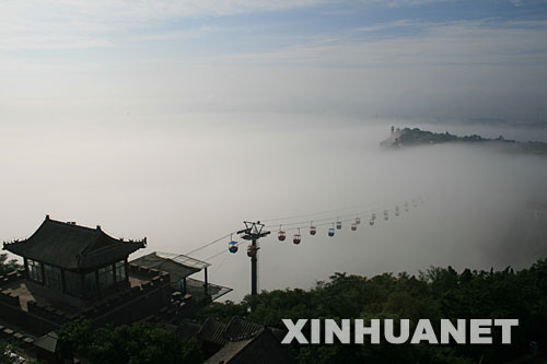 7月13日清晨,山東省蓬萊市出現(xiàn)平流霧奇觀,蓬萊景區(qū)宛如仙境,美不勝收。 新華社發(fā)(于良意 攝)