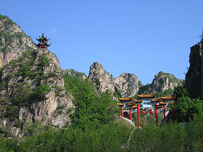 雙龍匯指的是流經(jīng)冰峪的兩條河:英納河和英納河的支流小峪河,此處是兩條河的交匯點(diǎn),水中立的巨石叫“劍劈石”,劍石周?chē)乃蚪小霸聞μ丁?nbsp;樂(lè)游源是冰峪石林地貌比較集中的地方,這里孤峰突兀,頗有點(diǎn)小桂林的味道。有人稱其為“天然大盆景園”,因?yàn)榫皡^(qū)內(nèi)有大象吸水、金雕、豬馱龜?shù)仍S多奇景。
