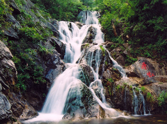 集觀光、休閑、購物為一體的重渡溝風景名勝區(qū)位于欒川縣潭頭鎮(zhèn)西南部,距洛陽市150公里,欒川縣城50公里,九龍山溫泉18公里,有金雞河、滴翠河、水簾仙宮等景區(qū)組成,有景點200余個,旅游面積30平方公里。景區(qū)內(nèi)林茂草豐,雉飛鹿鳴,花鮮果稠,野趣橫生。樹奇石峻,洞幽潭靜,飛瀑流泉,繞嵐斜虹,棧道梯懸,獵獵古風。金雞河、滴翠河為兩條常年性河流,最小流量每秒0.5立方米。即使持續(xù)干旱,赤地千里的炎炎盛夏,或白雪皚皚,滴水成冰的凝凝隆冬,景區(qū)內(nèi)依然碧波翻浪,瀑聲震天。景區(qū)內(nèi)有竹林千畝,多生于河邊路旁,翠竹碧水交織,肥鴨壯鵝嬉戲,具有曲型的水鄉(xiāng)風光,在中原堪稱一絕。 金雞河景區(qū)位于重渡溝西南部,景區(qū)全長三3公里,景區(qū)入口距河水發(fā)源處相對高差340米,金雞河是由噴涌而出的劍插泉、象吐泉、鑄鏈泉、天井泉等匯集而成的一條常年性河流。因西漢末年劉秀遭王奔追殺到此金雞引路而名。以水為斧鑿融會大自然的神工天力,造就了以水為主旋律的金雞河景區(qū),景區(qū)內(nèi)有5米以上的瀑布30余條,30米以上的瀑布5條,最長瀑布100余米,最寬瀑布8米以上,是一個龐大的瀑布群。以抑惡揚善為道德基調(diào),文化內(nèi)涵深沉,傳奇特色明顯,趣味性強的民間傳說恰到好處地點綴其中,從而構(gòu)成瀑布成群潭成串,林密石怪傳說奇的夢幻景觀。其中千年菩提、龍曳磨、吉象迎賓、祈天、小橋流水人家、靈潭、飛虹瀑布、老龍窩、蟾蜍邀主、泄憤崖瀑布、鎖蛟崖、銀沙纏繡球、雙疊瀑布、鱷魚滴淚、九天擂鼓、雙龜弄濤、聽濤嶺、飲馬槽、雞冠巖、金雞引路、劉秀靠背、歇三歇、看寶石、金雞谷、翻珠潭、聽風處、金雞谷瀑布、金雞石、珍珠簾、濺珠潭、劍插泉、象吐泉、鑄鏈泉、天井泉、象牙壩等景點,尤為神奇壯觀,自然風貌與民間傳說交相成景,既可飽覽秀麗風光,又可目睹歷史文化景區(qū)內(nèi)有一險一緩兩條環(huán)河道路,在密林濃蔭中蜿蜒穿行。隨處設(shè)有休息處,避雨棚和供游客參與活動的娛樂設(shè)施和項目,游客可根據(jù)自己的年齡、身體狀況、及興趣愛好,自行選擇是和自己的旅游線路和活動內(nèi)容。富有山情風味,充滿田園氣息的農(nóng)家飯店、賓館180余家,給游客提供味美可口的飯菜和柔軟舒適的床鋪采菊東籬下,悠然見南山的怡然自得會使游客心曠神怡,樂而忘返。 滴翠河景區(qū)位于重渡溝西北部,全長5.5公里,有天女植竹,竹翠欲滴,碧水清流在竹林中穿行而得名。景區(qū)內(nèi)有竹林千畝,鋪天蓋地遮天蔽日得竹海繪成了滴翠河景區(qū)得主畫面,天女植竹、湖光翠影、教堂隱竹、竹林長廊、碧劍刺天、幽竹尋溪、農(nóng)舍掩竹、竹海蟬聲、震天雷瀑布、玉如意等給這幅畫卷著上了點睛之筆。游客在這里觀光、休閑,即可觀看嘗心悅目得竹林風光,又可居住寬敞明亮的竹樓客棧;既能睡竹床、坐竹凳、躺竹椅,又能吃竹筒米飯,嘗竹筍燴菜,品竹葉香茗,臨走還可帶上一些制作精巧的竹制器具和竹編工藝品作為留念水簾仙宮景區(qū)位于滴翠河上游的石灰窯溝內(nèi),有水簾仙宮瀑布、水簾仙宮、仙翁登壇、千年豹榆、壁虎情緣等景點組成。水簾仙宮瀑布長70米、寬8米。水繡石上布滿青苔,飛瀑流過被青苔分割成條條飛金泄銀的白色水鏈,恰似銀線穿珠精制而成的珠簾懸掛于懸崖峭壁上而得名,晴朗的天氣太陽照在瀑底底潭中再映到飛瀑珠簾上形成了七色的彩虹,與太陽照耀下的青苔珠簾交相成輝,那五彩繽紛的景象,很容易使人想到蓬萊仙閣的海市;瑤池仙宮的蜃樓。水簾仙宮高20米,寬10米,深40米,這里是典型的容巖結(jié)構(gòu)再輔以造物主的匠心獨運,琢磨出二佛守宮、玉獅望月、倒掛蓮花、金龍盤柱、雙佛打坐、鳳凰展翅、獼猴登山等多處奇妙無比的景觀獨特的水鄉(xiāng)風光,多而集中的景點,平緩的道路,樸厚的鄉(xiāng)俗民情、優(yōu)越的位置、便利的交通,正吸引著四面八方的來客紛至沓來。