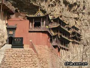 懸空寺位于北岳恒山腳下的金龍峽,距山西大同市約80公里,據說是北魏時一位叫了然的和尚所建,距今已有1400多年的歷史。