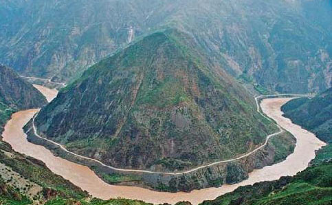 萬里長江第一灣位于中甸縣城南部沙松碧村與麗江石鼓鎮之間。萬里長江從“世界屋脊”青藏高原奔騰而下,在巴塘縣城境內進入云南,與瀾滄江、怒江一起在橫斷山脈的高山深谷中穿行。到了中甸縣的沙松碧村,突然來了個100多度的急轉彎,轉向東北,形成了罕見的“V”字形大彎。遠眺,美麗的江灣恍若一彎上弦月飄落人間。 2、金沙江第一灣