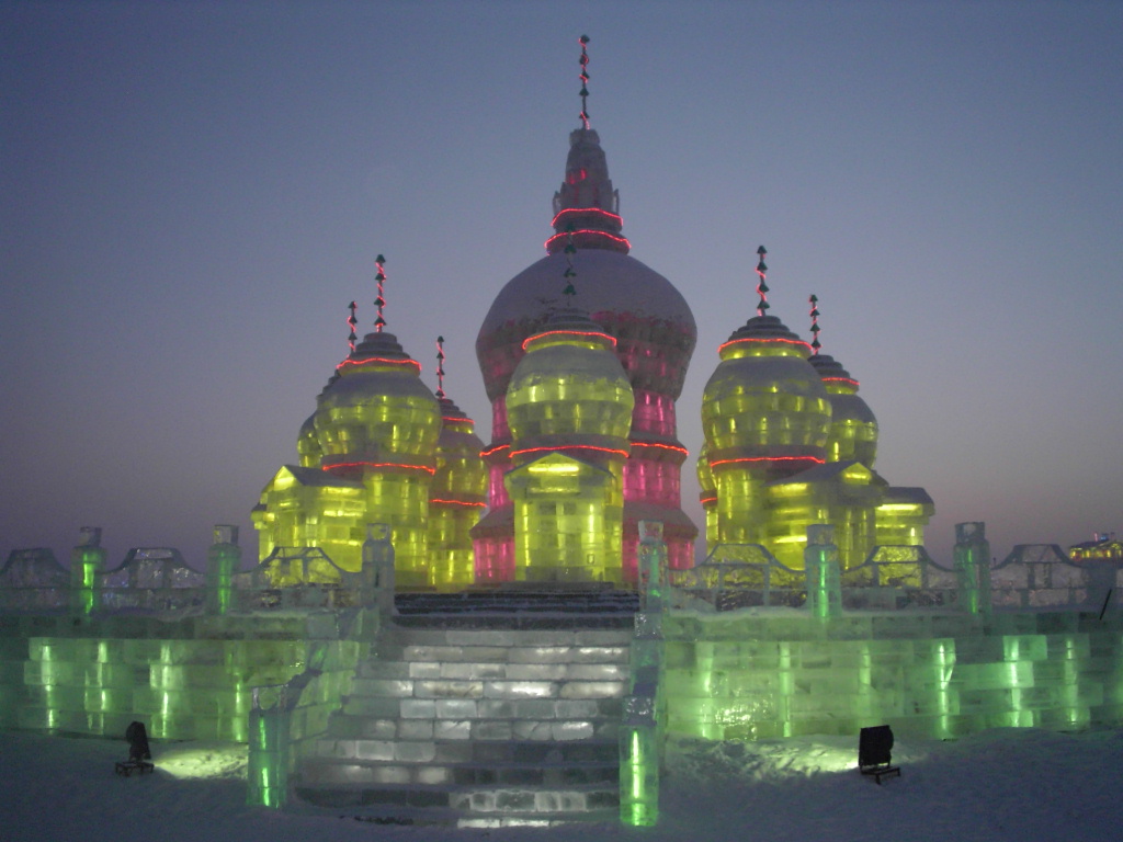 中部景區(qū):全園主景區(qū),以觀賞和舉辦大型活動為主。由珠穆朗瑪峰、閆庚華山、時代廣場、世紀鐘、巨型冰柱廊、彩色冰屏、疊水噴泉等景區(qū)和景點組成。
