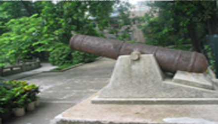 四方炮臺位于蟠龍崗的山坡上,原稱永寧炮臺、永康炮臺,是清代鎮守廣州的城防炮臺之一,始建于清順治十年(1653)。是鴉片戰爭重要遺跡之一。因炮臺長寬似四方形,故俗稱“四方炮臺”。 據顧炳章《虎門內河炮臺圖說》(手抄本)載:四方炮臺是廣州城防的重要據點,“外臺周圍四十九丈九尺,高一丈七尺;臺中子臺周圍十六丈八尺,高二丈一尺。垛墻青磚,外臺石砌,南面各開大門一道。”“外臺配炮十三位”,“子臺配炮九位。”“官廳二間,兵房十六間,藥局一間。系廣州協左營管轄。派記委兵丁李全亮等二十名在臺防守。” 1841年第一次鴉片戰爭時被英軍占領,并作為英軍司令部。四處騷擾,奸淫擄掠,激起中國人民無比憤慨。1841年5月26日,廣州城北各鄉義勇首領議定聯防抗英,相約“一鄉鳴鑼,眾鄉皆出”。29日,盤踞四方炮臺的小股英軍竄至廣州城北五里的三元里騷擾,菜農韋紹光等群起抗擊,打死侵略軍10余名,其余狼狽逃竄。同年5月31日三元里一帶103鄉及番禺、南海、增城、從化等地群眾包圍四方炮臺,次日英軍被迫撤出廣州。撤出時,將炮臺及各炮破壞。后經修復。第二次鴉片戰爭時期,炮臺又遭破壞,現僅存地基。1962年在炮臺遺址發現鐵炮一門。當時廣州人民憤于清廷腐敗無能,遂以廣州話寫下一首《怨氣歌》,訴述四方炮臺的不幸和三元里抗英民眾的英勇。 1999年被評市級文物保護單位。 2005年,四方炮臺景區兩個入口處新立了象征人民反抗外敵侵略的紅沙巖雕塑兩座,炮臺遺址修繕一新,我園根據歷史,將廣州市人民抗擊英國侵略軍有關史料編成故事,立了古炮臺遺址的文字說明牌,安放了“永寧臺”古碑,游客登上遺址,可以看到當時的炮座(也有人說是用來插旗桿的底座)。整個景區修建廁所1座,1條休息廊、50張休息椅和2個200多平方米的生態平臺,另外活動平臺擴充到1000多平方米,步級600多米,園道2500多米,并新種植腎蕨、黃花夾竹桃、杜鵑、懸鈴花、女貞、儀花、奕樹、白嬋、菜豆樹等多種植物。現在,四方炮臺景區樹影婆娑,山花爛漫,已成為市民健身、唱歌、休閑的好去處,也大大豐富了景點的觀賞性和愛國主義內涵。