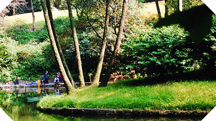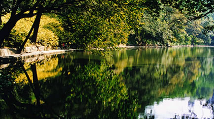 于綠蔭深處,景色清幽。它緊靠五羊石像,可望鎮海樓。小型人工瀑布仿如與湖面成一體,是垂釣、寫生、賞景的好去處。