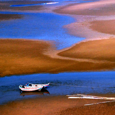 ![]() 從未踏入過(guò)福建,有些好奇--與臺(tái)灣隔海相望,擁有奇怪的語(yǔ)言......假期不多,沒(méi)有時(shí)間造訪廈門和鼓浪嶼,只去省會(huì)福州附近轉(zhuǎn)了轉(zhuǎn),看到了個(gè)最真實(shí)的福建。福州之于廈門,就好比大連之于沈陽(yáng),青島之于濟(jì)南,深圳之于廣州一樣,后者是理想主義,前者卻忠實(shí)記載了原景--簡(jiǎn)單,一點(diǎn)也不摩登,或者華麗。 從福州到寧德,從寧德到霞浦,然后向霞浦以東的幾個(gè)海灘輻射。一路上丘陵綿綿數(shù)百公里,陰郁的云朵飄浮在山腰,朵朵都是雨。公路都是出奇的好,寬暢而不顛簸,再破的車開(kāi)起來(lái)都是游刃有余,每次都被顛得舒服得不得不入睡...... 在福州附近的小縣城霞浦投宿,一點(diǎn)容不得侃價(jià),好容易找到個(gè)便宜點(diǎn)的,住了二日居然說(shuō)要漲價(jià)二十,怎么辯論都是無(wú)容置疑--住或不住,自己看著辦。后悔啊我們這些傻瓜,怎么不一次性付款,還可免去此等奇異事--總以為住多了,薄利多銷還能打折。 從初一到初五,這里無(wú)論是縣城還是小鎮(zhèn)、鄉(xiāng)村,都處于半冬眠狀態(tài),三分之二的店門是拉下的,巴士過(guò)了五點(diǎn)是只進(jìn)村不出村的,街道兩邊的垃圾是成堆沒(méi)人收拾的......縣城的旅館,他們懂得附近的海灘對(duì)于色友們的吸引力,但在村里要找個(gè)面館都比登天還難。于是我們每天只吃一頓--早上吃自己帶的面包,中午吃自己帶的巧克力和肉脯以及其他零嘴,到了晚上就去街邊攤大搓一頓.....這實(shí)在是有違我少吃多餐的原則,可是沒(méi)的辦法。這兒只有縣城才有飯館,而縣城往往到了傍晚才剛剛蘇醒,街道上開(kāi)始熱鬧起來(lái),街邊一個(gè)個(gè)大紅帳篷里掛著燈泡搭著飯桌。路上有“艷舞宣傳車”開(kāi)來(lái)開(kāi)去,奪人眼球也刺激人的耳膜;鞭炮適時(shí)地放上幾串--人們開(kāi)始夜生活了。而我們的生物鐘,只能正好在這個(gè)時(shí)候挑上幾個(gè)菜,吃一頓海鮮,然后就和繁華擦肩而過(guò)了。 我們和當(dāng)?shù)厝耸窃挷煌稒C(jī)半句多的,他們奇怪我們對(duì)著他們的漁船一陣掃射,我們奇怪他們穿著鮮艷的睡衣走街串巷......不過(guò)我們不免要和他們接觸,問(wèn)問(wèn)去哪兒坐什么車,問(wèn)問(wèn)哪兒有海產(chǎn)品買,但換來(lái)的基本都是一臉迷茫、疑惑,或是冷漠。只有在拉客上車的時(shí)候,他們的臉才稍稍生動(dòng),但此時(shí)我又不愿正臉瞅他們了。 沙江港口的漁船停歇著,靠得很緊,任憑風(fēng)吹雨打,東搖西晃卻肩并肩,不棄不離。本想看看臺(tái)灣漁船靠岸,是否會(huì)有傳說(shuō)中的船上交易,但風(fēng)浪中幾乎沒(méi)有小船進(jìn)出,海關(guān)樓此時(shí)也形同虛設(shè)。港口的鐵錨、一堆堆的鐵鏈、一團(tuán)團(tuán)的麻繩,遺棄的塑膠鞋、以及時(shí)不時(shí)飄過(guò)鼻尖的腥味,都有一種滄桑的涼意。捕魚的大船斜靠在岸邊,船上兩排聲勢(shì)浩大的白色燈管,說(shuō)是出海時(shí)點(diǎn)亮吸引墨魚的。墨魚自己黑乎乎的,卻向往光明,但當(dāng)它們以為自己投身了光明時(shí),卻已到了光明的盡頭。 到鎮(zhèn)上,突然熱鬧起來(lái),找到一個(gè)海蠣餅的小店,目睹一只美味的海蠣蛋餅出爐的全過(guò)程:在一個(gè)半徑十厘米左右的鐵盆里撒上一把海蠣,把兩只蛋打散拌入一團(tuán)水磨粉里,均勻倒入鐵盆,把海蠣全部覆蓋,然后撒上密密麻麻的蔥和韭菜段。很快,蛋餅就滋滋地鼓泡泡了,蛋香、海蠣香、韭菜香撲鼻而來(lái),讓味覺(jué)一下子享受饕餮美味。還不等蛋餅太凝結(jié),就被一鏟鏟地割開(kāi)裝盆,端上飯桌了。我們迫不及待,燙得齜牙咧嘴--此時(shí)誰(shuí)還顧得上形象呢? 三沙也是一個(gè)稀奇的地方,鎮(zhèn)上隔著五十米不到有兩個(gè)教堂,雙塔的是基督教堂,圓頂?shù)氖翘熘鹘烫茫沤套杂桑胂笤缟掀唿c(diǎn)每家每戶的人們向左走或向右走,匯集到不同的二個(gè)教堂里,唱著贊美詩(shī),會(huì)是什么景象?而后又發(fā)現(xiàn)在某條小道上另有小小教堂佇立在一隅,那兒會(huì)有誰(shuí)去呢? 沿著小山爬到頂,俯瞰海面,成百上千的竹桿光禿禿地插在海中,密密麻麻的架勢(shì)總讓人以為眼睛花了--幻想過(guò)幾個(gè)月這些竹桿掛上海帶的樣子,是不是可以與染坊的架勢(shì)相當(dāng),少了些色彩,卻把陣容擴(kuò)大到了視線不可及的遠(yuǎn)方。電視里常有漁家女劃船穿過(guò)蘆葦蕩,那么當(dāng)漁人穿過(guò)比人還高的海帶排陣,或許找都找不到了。 午后陰雨中,我們翻山去看高羅的海,山路潮濕而寧?kù)o,路邊搖曳著野花,踩在濕嗒嗒的樹(shù)葉堆里,碎碎的聲響配合著呼吸聲一路向前。天上的云落到山頂,叢叢地悠悠地變幻著,趁人不備做出各種姿勢(shì),一抬頭就會(huì)有新景象。在最后一個(gè)下坡的時(shí)候,就看到一片農(nóng)田后的遠(yuǎn)處的海,安靜極了,一不小心會(huì)以為那是一片陸地。海邊總是讓人留連忘返,看一片片浪潮撲來(lái),又無(wú)可奈何地褪去,留下華麗的白色花紋,像跳舞的女子退場(chǎng)時(shí)最后的蕾絲舞裙邊。潮水褪去后,沙灘一深一淺的花紋,延綿整個(gè)海岸線。 喜歡上了海,又花了一整天去了大京的海灘,穿過(guò)一片樹(shù)林,那里的海更寬闊,遠(yuǎn)處隔海相望,有些影影憧憧的山,在海上騰霧中若隱若現(xiàn)