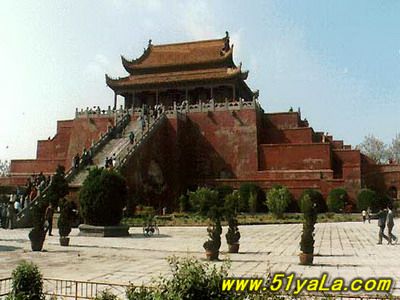 龍亭公園位于開封城內西北隅,占地面積1300多畝,其中水域面積710畝。全園包括午門、玉帶橋、朝門、照壁、朝房、龍亭、北宋皇宮宸拱門遺址、碑亭、北門及東門等清朝萬壽宮建筑群體,還有奇妙的潘楊二湖、明媚的四季同春園、典雅的盆景園、號稱中原一絕的植物造型園及長廊水榭等園林景觀。龍亭大殿高26.7米,基高13米,坐北朝南。東西兩側各有八間朝房,與大殿組成完整的宮殿院落,其內建有中國首座大型宋代蠟像館,63個人物蠟像形神兼備,栩栩如生。御道兩側為著名的楊湖和潘湖。雖然兩湖東西相鄰,但楊湖清澈見底,恰似北宋名臣楊業的光明磊落,潘湖卻渾濁不堪,正如北宋奸臣潘美的卑鄙齷齪。整個園區碧波蕩漾,垂柳依依,芳草如茵。既有北方宮殿雄渾之氣魄,又兼南國園林秀麗之風姿。