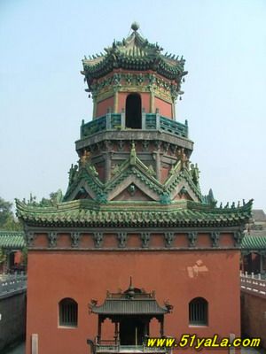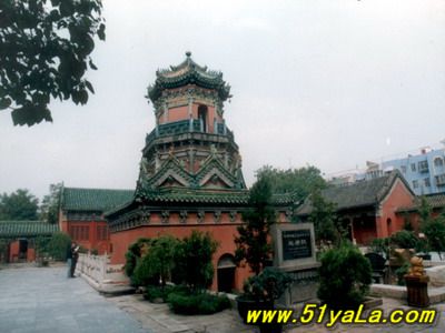 河南省文物保護單位,在城內西南隅,包府坑北,原名重陽觀,是為紀念道教中全真教的創始人王重陽逝世此地而建。王重陽,字知明,陜西咸陽人,生于北宋政和二年(公元1112年),卒于金大定十年(公元1117年)。他所生活的時代正是宋王朝南渡,大片北方領土落入金人之手,民族矛盾尖銳、戰亂頻繁之際。王重陽能文擅武,美須髯,形質魁偉,任氣好俠,作為宋朝遺民,他對金人殘暴的民族壓迫強烈不滿,于是自稱得道,佯狂垢淤,在終南山南時村掘地為穴,封土高數尺,居于其中,號“活死人墓”,以此表示對金人統治的憤懣和不合作。后他赴山東寧海等地傳教,過全真庵,創立全真教。他在道教史上的最大貢獻是融道、儒、佛家的思想于一爐,倡導“三教平等”成為道教中興的關鍵人物。他傳授了馬鈺、孫不二夫婦、譚處端、劉處玄、丘處機、王處一、郝大通等七位弟子,其中以長春真人丘處機最有名。金世宗大定九年,他率丘處機等四弟子西歸終南,途經開封,住在今延慶觀所在地的一家王氏旅店,次年無疾而終,享年青8歲,他作有千余篇詩詞傳于后世。為紀念他,后人在其逝世地建了一座重陽觀,成為在此地修建道教宮觀數百年興衰史的開端。金末觀廢,元代重建,賜名“大朝元萬壽宮”。明洪武六年(1373年)部分修復,改名延慶觀。現存玉皇閣1座。玉皇閣又名通明閣,座北向南通高15.80米用青磚和琉璃瓦件構成,結構嚴謹,富于變化,共為3層,下層為方形,4坡頂,室內下方上圓,4角砌出密集斗拱,頂似蒙古包,中層呈棱狀,8面壁體上附加相互連接的8座懸山式建筑山面。上層為8角閣室,南北各辟1門,室內置玉皇及左右侍臣石雕像。閣頂作攢尖式,琉璃瓦頂上施銅質火焰玉珠。結構奇特,色彩絢麗。建國后,多次進行維修,并因地制宜逐步恢復一些殿堂,現已建成的有三清殿、配殿等,是國內罕見的道教建筑。