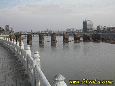 古稱鎮淮橋,南起凝安門(水門口),北接大順門,橫跨潢河,為南北二城通道。 始建于元太定年間(1324—1328年)。明憲宗成化十九年(1483年)改建,易名跨潢橋。明萬歷三十一年(1603年)建成石礅木橋,始稱鎮潢橋。清乾隆二十三年(1758年)知州吳一嵩將橋位西移至北城大順門(中山門)與南城凝安門(現已毀)之間,橋面鋪設松木板。民國期間,屢修屢塌。50年代,橋面重鋪木板,仍為石墩木橋。 1966年改置鋼軌橋梁和水泥橋面,橋長108米,共8墩9孔,每孔凈跨7.8米—9.6米不等。 北岸為中山門,階高岸陡,南岸街道狹窄,通往一中、清真寺,該橋不行駛汽車,僅供人行。 鎮潢橋建在潢河最窄處,該處河道寬僅100米,其中橋墩就占了30多米。季節性很強的潢河,在橋下的過水斷面,其實只剩下60多米。每年汛期,鎮潢橋都一下子變成潢河水的卡脖子橋。穿越潢川縣城的潢河,防汛能力因此而不足5年一遇。洪水最厲害的時候,鎮潢橋以上河段水位不斷上漲,洪水爬上城池,淹沒公路和很多民房。橋以上水位和橋以下水位,形成高近1米的落差。鎮潢橋,每遇洪水都要讓潢川人心痛。 飽受洪水之苦的潢川人,一直在爭取根治潢河的工程。在黨中央、國務院的直接關懷下,2000年年底,國家批準了潢河潢川城關段治理計劃。2003年7月,一期工程基本完工。鎮潢橋上下游近1000米長的河岸煥然一新,上游新建的航空大橋傲然屹立,成為新的通道。相形之下的鎮潢橋就成了丑小鴨。