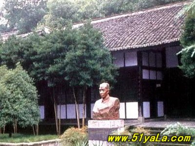 吳玉章故居位于榮縣東南,距縣城約15公里的金臺鄉蔡家堰村,今尚存土木結構房屋三間,其中兩間有樓,占地面積96平方米。1958年,吳玉章回縣,將舊宅捐贈辦師范。1983年師范搬遷后,辦起蔡家堰中學(今名玉章中學)。 1988年吳誕辰110周年,國家拔款,在緊連舊居之西重建吳玉章故居,整修至雙石鄉的道路,及蔡家堰大橋。修葺后的吳玉章故居,占地15500平方米,總建筑面積1050平方米。大門門楣懸掛國家主席楊尚昆的題匾“吳玉章故居”。門內兩邊柱上刻有對聯:“荊樹有花兄弟樂;書田無稅子孫耕。”院壩正中安放吳玉章半身雕像。雕像基座正面刻有中央軍委主席鄧小平的題詞:“我國杰出的無產階級革命家、教育家、歷史學家、語言文字學家吳玉章。”基座背面陰刻吳玉章的生平簡介碑文,文字為繁體正楷。堂屋門楣懸掛徐向前元帥題寫的匾額“革命前軀”。 大門兩邊及檐柱上亦有對聯:“創業難,守業亦難,須知物力維艱,事事莫爭虛體面;居家易,治家不易,欲自我作則,行行當立好規模”。“百年丕振延陵緒;三讓猶存泰伯心”。堂屋內陳列吳玉章60和70大壽時,中共中央主席毛澤東及董必武,謝覺哉等同志的賀詞、壽詩。堂屋之右陳列吳玉章的遺物,以及反映其革命一家的圖片;堂屋之左陳列家鄉人民懷念吳玉章的圖片。