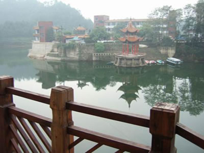 船石湖位于威遠(yuǎn)縣連界鎮(zhèn),威連路直通景區(qū)大門。與山幽林密的避暑勝地森林公園隔山相望。湖區(qū)群山環(huán)抱,奇山怪石點(diǎn)綴其間,令人浮想連翩,孕育出許多神奇的傳說和動(dòng)人的故事。湖區(qū)有大小港岔203條,全島、半島100多個(gè),湖長(zhǎng)5公里,四季山青水碧,是游人度假、休閑的好去處。 走進(jìn)船石湖,大壩左側(cè)半巖崩裂下塌,一巨石墜入湖中形如魚船,湖名得之于此。正面陡峭的山崖上人工鑿壁打造出長(zhǎng)20余米,寬2米左右的"相思洞天"。洞內(nèi)有浮雕10余幅,講述著"湖底石郎魚作伴,湖岸紅豆淚洗顏"的動(dòng)人故事。 棄洞沿山前行,信步于林蔭茂密的石階上,放眼眺望,群山抱碧水,山上亭臺(tái),山下廊房、草坪、彷古石橋構(gòu)成一幅美麗的山水畫,讓人賞心悅目,心境寬廣。 離島前行,左側(cè)便是聞名遐邇的"梭子石",相傳它是織女編織天幕彩霞的玉梭,與天兵抗?fàn)帟r(shí),不慎墜落于此。周家灣的"香爐山",四周煙云繚繞,美不勝收。翹首右望,斬石橫空出世,大有仙人"乘風(fēng)歸去"而又依依不舍之感。柏樹灣內(nèi)有一株約200年歷史的紅豆村,樹高十余丈,婷婷玉立影婆娑。傳說是鯉魚姑娘的化身。附近半島,蒼松綠翠,田畦花圃,犬吠雞鳴,似"世外桃園"。離湖登岸,余興未盡的游人可據(jù)自好,或輕歌曼舞,或茶園棋牌,品茶、論觀感。凡游此者,莫不流連忘返,不忍離去。至于百瀑爭(zhēng)鳴、翠堤春曉,舟洞琴聲等勝景,更是別具特色。