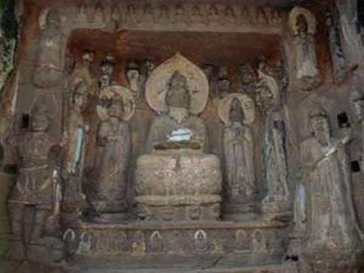 玄妙觀摩崖造像是四川省人民政府于1991年公布的省級(jí)文物保護(hù)單位。玄妙觀位于安岳縣城北面20公里的鴛大鎮(zhèn)黃桷片區(qū)的集勝山腰。石刻造像雕刻在一獨(dú)立的平頂巨石四周,共有龕窟編號(hào)79個(gè),大小造像129尊,碑刻題記13處,均為盛唐時(shí)期作品。
