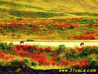 三千三百道溝,三千三百道梁,溝溝有紅葉,溝溝有融雪,溝溝有泉涌。山被紅葉遮掩,水被紅葉浸染,道被紅葉鋪成,一簇簇、一團團燃成米亞羅秋的火焰。雪山,溫泉,森林,紅葉,藏羌文化,構成一個神奇的紅色夢幻走廊。