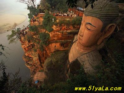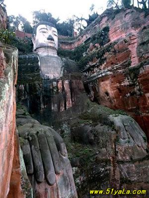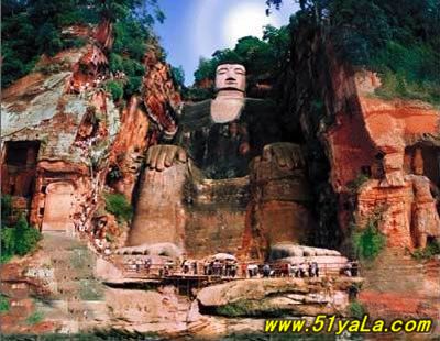 凌云山緊傍岷江,上有凌云寺,建于唐代。依山開鑿大佛一座,通高71米,腳背寬8.5米,為當今世界第一大佛。大佛為唐代開元名僧海通和尚創建,歷時90載完成。大佛為一尊彌勒座像,雍容大度,氣魄雄偉,被詩人譽為“山是一尊佛,佛是一座山”。
