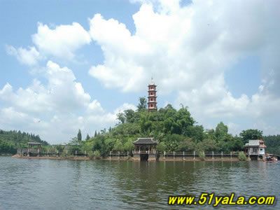 關(guān)于響水灘的來歷,在當(dāng)?shù)赜幸粋(gè)傳說:有一力大藝精的石匠周世勁,見田地久旱,決心闖龍宮為民求雨,當(dāng)他找了七七四十九天時(shí),身子累壞了,這時(shí)落人一個(gè)洞中,最后闖過九九八十一道難關(guān),來到龍宮,龍王被其精神感動(dòng),送他一只金鈴,什么時(shí)候要雨只要將金鈴搖動(dòng)即可,從此人們過上安居樂業(yè)的主活。他死后,人們?cè)谒麎炃鞍擦艘粋(gè)石盒子,把全鈴放在石盒中,后一個(gè)自私的人私自取雨惹怒龍王。龍王又收回金鈴,但就在放鈴的下面涌出一股溪流,流水經(jīng)過石灘憑發(fā)出轟鳴的響聲,人們就把這個(gè)灘取名響水灘。 大壩的銜右側(cè),是大書發(fā)家趙蘊(yùn)玉寫的“望湖樓”,望湖樓共有三層,層層皆可看風(fēng)景,舉目眺望,四周山巒重疊,所有景色盡收眼底,樓下大壩,白色的欄桿整齊排列在大壩兩側(cè),如同鑲嵌在石壩上的玉帶,望湖樓有詩(shī)可證:玉帶橫鎖千山水,瓊摟縱托九霄霞”。 坐上木船,又可到翠湖的另一個(gè)景點(diǎn),那就是龍華山,這里有許多優(yōu)美的傳說,傳為最廣的說是龍華山和山后的玉鳳山是兄妹,哥龍華為保護(hù)百姓和莊稼的安全,用身體抵擋滔滔大浪,最后被水淹死,妹妹玉鳳傷痛不已,也倒在大地上死去,而聳立成兩座山。據(jù)說龍華山上的樹木從不怕干旱,年年都長(zhǎng)得枝繁葉茂,郁郁蔥蔥,很是讓人喜愛。] 龍華山上育一閣叫龍華閣,閣前有一棵黃桷樹,大約有500多年歷史了,因其歷史久遠(yuǎn)而惹人逗留,真左邊有一小亭,名曰“悠然亭”,亭內(nèi)設(shè)有石凳、石桌,亭前的對(duì)聯(lián)“隔水修竹綠,依山小亭紅”把小亭的雅致,寫得形態(tài)逼真。 游完龍華閣,可來到翠湖另一景點(diǎn)尖山寺。走過一排長(zhǎng)廊,便是著名便是雕刻大師劉開渠書寫的“歸去來”亭,內(nèi)外有兩聯(lián)“棹穿波底月,船壓水中央”,“盡興且歸去,探幽可重來”,寫得妙趣橫生。 走過幾十步臺(tái)階,是楚圖南書寫的“銀風(fēng)塔”,站在這里,可觀翠湖八景:玉帶長(zhǎng)堤、芳園秋月、銀風(fēng)倒影、龍華晚照、平湖嵐光、溢流飛瀑龜山攬勝、金城煙云。旁邊雕刻有一個(gè)碩大得草書“虎”字,其意有六種德高望重、共建文明、明知山有虎,偏向虎山行、高山流水、畫中有畫、畫中有詩(shī)、天倫之樂、萬事如意,可謂匠心獨(dú)運(yùn)。 銀鳳塔共有三層,層層旨有觀看水色湖光的窗口,站在窗口,讓微風(fēng)拂擊容顏,一份愜意會(huì)驟然而至,有聯(lián)曰:“登樓入境外,覽勝天然中。”其境之幽,其意之美盡在其中。 翠湖在廣安岳池的郊區(qū),在市內(nèi)乘七路公交車,花一元錢的車費(fèi)便直抵目的地了。我上次去了一趟,翠湖還是有看頭的,可惜人不是很多。而且有很多農(nóng)家戶在翠湖景區(qū)住家。門票收的是兩元一個(gè)人,但那個(gè)收門票的看見我們?nèi)吮容^多,便打了折扣,懶懶的。 翠湖有一首據(jù)說是陸游提的岳池農(nóng)家的古體律詩(shī),什么內(nèi)容我我忘記了,但讀出來是很有田園風(fēng)味的!有些當(dāng)年的陶淵明的悠然見南山的味道!翠湖的很多景點(diǎn)都需要乘船去觀賞的,比如那個(gè)什么什么塔,挺精致的。我記憶里最深的據(jù)說還有南北魏晉時(shí)候的碑林,有很多各種各樣的字體,風(fēng)格不同,但都很有氣勢(shì),傲然在幾千年的風(fēng)霜雨雪中,蒼老不失當(dāng)年勇!不知道倘若那些文人墨客知道自己當(dāng)年的手跡在漸漸的被人遺忘,或被人從新記憶,會(huì)興慶時(shí)間沒有把所有的東西帶走,還是感慨時(shí)間畢竟要慢慢帶走這一些小小的驕傲呢! 還有一個(gè)景區(qū)不需要乘船,是大片繁蕪的梨樹,春天的時(shí)候,梨花開的到處都是,很美很美的。然后風(fēng)過來,梨花就以最輕盈最輕盈的姿勢(shì)緩緩掉下來。比任何舞蹈家都完美,好像能落到每個(gè)人心里最柔軟的地方。我梨花是見過的,但就是這里梨花鋪地的場(chǎng)面我覺得格外的美,格外讓人心動(dòng)!