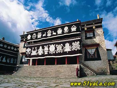 大藏寺全名是甘丹大藏恒林,大藏是漢語(yǔ)“功德圓滿”之意。大藏寺是由嘉絨高僧阿旺扎巴大師于公元1414年所建,是他修建的108個(gè)寺廟中的最后一個(gè),至今有950多年歷史。 大藏寺所在地,山形如一頭巨象,寺院建在象的頸部。此外,附近山勢(shì)如同環(huán)繞中央,自然形成一座十三尊大威德金剛壇城之排列。在寺院中心可遠(yuǎn)眺東南西北各有一峰,是壇城的四方護(hù)法。 由于其悠久的寺史及規(guī)模,大藏寺被尊稱為“札倉(cāng)第二”。大藏寺至今仍保存著乾隆皇帝所贈(zèng)送象牙印章一枚、乾隆所供織棉布料、玉賜天衣及五佛冠、歷代圣旨及詔書,明代大將軍所供銅鑼一個(gè)。這個(gè)銅鑼是大藏寺寶物,其鑼聲異常洪亮美妙,遠(yuǎn)近知名。大藏寺在歷史上亦得到當(dāng)?shù)厥送了镜闹С旨肮B(yǎng),成為川西北一帶的佛法權(quán)威和中樞。 寺廟四周是一千多米用作轉(zhuǎn)經(jīng)的走廊。周圍是面積開(kāi)闊的高山草甸,植被豐富。在藍(lán)天的映襯下,與周圍的雪山、森林相映生輝。可在草甸上滑草、騎馬,傾聽(tīng)寺廟鐘聲、觀雪山日出,是宗教探迷、娛樂(lè)探險(xiǎn)的好地方。