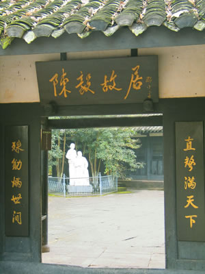 陳毅故居、陳列館座落于樂至縣城西北30公里的勞動鄉(xiāng)正溝灣,原故居建于清乾隆元年,1901年,我國偉大的革命家、軍事家、外交家陳毅同志誕生于此,故居占地5333平方米,系三重堂四合式穿逗瓦屋,共36間,有陳毅兒時(shí)和留法歸國后的居室等,廳前塑有陳毅夫歸漢白玉像,正門上方懸著鄧小平親筆題寫的“陳毅故居”雕刻木匾,院內(nèi)外松柏、花卉環(huán)繞,環(huán)境優(yōu)雅,1980年對外開放,并列為省級文物單位。