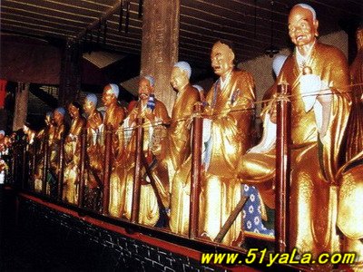 寶光寺除以“舍利寶光”聞名外,還有“羅漢堂”譽滿禪林。堂在大雄殿東,建于清咸豐元年(1851年),內塑羅漢500 尊,佛、菩薩、祖師77尊。中堂另塑千手千眼觀音。這些群塑,線條清晰,無一雷同、是我國南、北兩種流派各顯其技的產物。