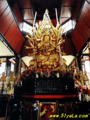 位于新都縣城北,距成都20公里。相傳始建于東漢,隋代名“大石寺”。全寺占地八萬余平方米,唐僖宗曾駐蹕于此,晚上看見寺中福感塔下發出寶光,便改寺名為“寶光寺”。宋時香火極盛,僧侶達3000之眾,后毀于兵火。現在的建筑是清道光年間妙勝和尚主持擴建的,有一塔五殿十六院,堪稱四川佛教一大叢林。