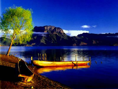 瀘沽湖,當(dāng)?shù)厝朔Q“謝納咪”,意為大海、母湖,從高處鳥(niǎo)瞰,如一只展翅的飛燕也是四川的第一大天然淡水湖,湖水面積50.8平方公里,另有萬(wàn)畝草海,水面海撥2688米,被譽(yù)為“高原明珠”。湖中七島,婷婷玉立,林木蔥郁。湖的西北面,雄偉壯麗的格姆山巍然矗立,這即是納日人為之崇拜而人格化的格姆女神。湖的東南南,與草海連接,這里牧草豐盛,牛羊肥美,淺海處茂密的蘆葦隨風(fēng)蕩漾,蔟蔟的花草迎風(fēng)招展,每到冬季,天鵝、黑頸鶴等珍稀候鳥(niǎo)數(shù)以萬(wàn)計(jì)棲息于此,憑添一種生氣,一種景致。湖周,在那茂密的原始森林里,虎、豹、獐、鹿、巖羊、小熊貓、短尾猴、斑羚羊等珍稀動(dòng)物出沒(méi)其間,給人幾分畏懼,幾分野趣。湖畔,阡陌縱橫,田園萬(wàn)頃,日出而作,日落而息,木摞房舍,炊煙裊裊,牧歌陳陳,漁火點(diǎn)點(diǎn),阿哥阿妹,結(jié)伴相隨,好一派景象萬(wàn)千的農(nóng)家農(nóng)園,令游人魂不守舍。 瀘沽湖畔居住的納日人,婚姻獨(dú)特,風(fēng)俗獨(dú)特,家家之主,皆為女性,其家庭成員血緣,均為母系血統(tǒng)。如家庭成員中,祖輩只有外祖母及其兄弟姐妹,母輩只有母親,舅舅和姨母。阿肖婚的子女則稱走婚父親為“阿波”或“阿達(dá)”。在這里,一切都是那么神奇,那么古樸,無(wú)論是成丁禮、阿肖婚、母系家庭、喪 葬,都是絕無(wú)僅有的。每個(gè)禮儀,每種風(fēng)俗,都是一個(gè)個(gè)優(yōu)美動(dòng)人的故事,一支支優(yōu)揚(yáng)動(dòng)聽(tīng)的牧歌,無(wú)不充滿幾分神秘,幾分浪漫,幾分詩(shī)情,幾分畫(huà)意,從而給人以遐想與思憶。 瀘沽湖山美水美人更美,除奇特的婚姻和風(fēng)俗外,瀘沽湖畔姑娘小伙那一身獨(dú)特的服飾更是令人矚目。瀘沽湖即是女兒國(guó),又是歌舞的王國(guó),一經(jīng)踏上這片熱土,游人無(wú)不為那遠(yuǎn)遠(yuǎn)近近、悠悠揚(yáng)揚(yáng)的“阿哈巴拉”所動(dòng)容,無(wú)不為那如巨龍滾動(dòng)的甲搓所誘惑。看吧,那遠(yuǎn)方漂來(lái)的豬槽船,載著阿妹,向您招手,向您放喉: “呵,朋友,來(lái)了就莫走,阿妹陪您到月落西山頭”。 在瀘沽湖這塊肥沃的土地上,人們的飲食文化也濃濃地染上了自然、古樸的特點(diǎn)。時(shí)至今日,納日人的飲食無(wú)論主食還是副食,仍是以山間泉水、芳草、果仁、五谷雜糧作佐料,人工自釀、自腌、自烤、自煮后置于壇里,放于火上、鍋里而后數(shù)日、數(shù)月直至數(shù)年才開(kāi)啟供已食用,供遠(yuǎn)方來(lái)客品嘗,這就是瀘沽湖有名的豬膘肉、蘇里瑪酒、酸魚(yú)、烤魚(yú)干、牛頭飯、豬腸血米等。這些美食佳肴,令您目不暇接,回味無(wú)窮。 瀘沽湖風(fēng)景區(qū) 距寧蒗縣城72公里的瀘沽湖像一顆晶瑩的寶石,鑲嵌在滇西北高原的萬(wàn)山叢中。 在美妙絕倫的湖光山色之間,生活著國(guó)內(nèi)外罕見(jiàn)的延續(xù)著母系氏族特點(diǎn)的摩梭人,那獨(dú)特的“阿夏”婚姻、自然而原始的民俗風(fēng)情,為這片古老的土地染上了一層神秘而美麗的色彩,被稱為神奇的東方女兒國(guó)。 女兒國(guó)風(fēng)情萬(wàn)千,一是因湖畔世代居住的摩梭人, 至今仍保留著原始母系社會(huì)的大家庭制和男不娶女不嫁的“阿夏婚”習(xí)俗;二是摩梭人“崇母尊女”的文化傳統(tǒng)似乎還影響了瀘沽湖的山水,秀美和縹緲成為這里特點(diǎn),走入這條線宛似走入一個(gè)純美的女神領(lǐng)地。 女兒國(guó)風(fēng)情線可分為兩個(gè)景區(qū): 第一個(gè)景區(qū)是瀘沽湖及湖周邊的摩梭村落。一可看湖,二可看木楞子房和四合院,三可乘豬槽船游湖島,四能在風(fēng)情路上領(lǐng)略摩梭風(fēng)情,五還可了解神秘的阿夏婚。湖西岸美麗的落水村,因交通便捷和湖畔理想的位置,成為這個(gè)景區(qū)的代表性景點(diǎn)。 第二個(gè)景區(qū)是北距落水村20公里的永寧。這有著名的扎美寺和永寧溫泉,在這可看摩梭人的藏傳佛教藝術(shù)及悠遠(yuǎn)的文化,還可了解歷史上的摩梭民風(fēng)。 最好的季節(jié)應(yīng)該是夏季,美麗的湖水湖心簇?fù)碇T多島嶼,湖面四周群山環(huán)抱,湖光山色,宛如仙境。52平方公里的湖面使天地、時(shí)光和每個(gè)人的心情都在這里凝結(jié)。據(jù)說(shuō)瀘沽湖水面在每天不同的時(shí)段呈現(xiàn)不同的顏色,每年四五月的時(shí)候,湖面上會(huì)聚集成千上萬(wàn)的黃鴦(一種黃顏色的鴛鴦),人間和自然界的恩愛(ài)全都集中于此了。 清晨的瀘沽湖水濃如墨,水島凝成一個(gè)黑影,遠(yuǎn)山隱隱約約被灰灰的空氣勾勒出來(lái),加上早起的摩梭人家升起的炊煙,活脫脫是一幅水墨山水畫(huà),別有一番風(fēng)情。而瀘沽湖水的藍(lán)色是詭異的,這樣的顏色就像是魔力無(wú)窮的磁石般吸住了一切,也包括你的眼睛。