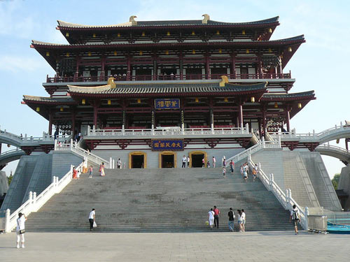 大唐芙蓉園 特點:宏大,富貴 元素:女性文化,科舉文化,詩歌文化 大唐芙蓉園位于西安市曲江新區(qū),占地1000畝,其中水面300畝,是西北地區(qū)最大的文化主題公園,建于原唐代芙蓉園遺址以北,是中國第一個全方位展示盛唐風(fēng)貌的大型皇家園林式文化主題公園。大唐芙蓉園創(chuàng)下多項紀錄,有全球最大的水景表演,是首個“五感”(即視覺、聽覺、嗅覺、觸覺、味覺)主題公園;擁有全球最大戶外香化工程;是全國最大的仿唐皇家建筑群,集中國園林及建筑藝術(shù)之大成。 園內(nèi)唐式古建筑在建筑規(guī)模上全國第一,是世界上最大的建筑群,集中了唐時期的所有建筑形式,簡直就是一本完整的唐代建筑教科書。大唐芙蓉園以它獨特的魅力和無可比擬的歷史地位,成為華夏子孫尋根追夢的文化祖庭和重溫盛世的精神家園,它將帶您進入中國唯一的盛唐文化之旅。 早在歷史上,芙蓉園就是久負盛名的皇家御苑,隋文帝開皇3年(公元483年),就于此修建了“芙蓉園”。現(xiàn)今的大唐芙蓉園建于原唐代芙蓉園遺址上,總建筑面積近10萬平米,亭、臺、樓、閣、榭、橋、廊,一應(yīng)俱全。全園景觀分為十二個文化主題區(qū)域,從帝王、詩歌、民間、飲食、女性、茶文化、宗教、科技、外交、科舉、歌舞、大門特色等方面全方位再現(xiàn)了大唐盛世的燦爛文明。園中亭臺樓閣、雕梁畫棟,景點眾多。