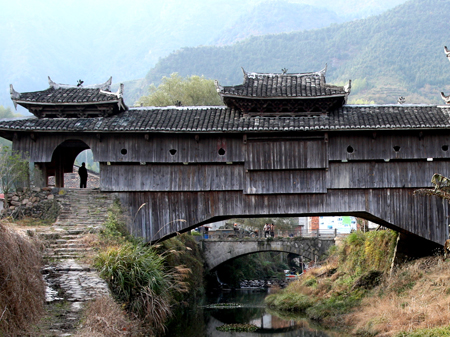 慶元 來到慶元月山村,因為它是廊橋之鄉。 月山村,村后山形如半月,村前溪水曲似鉤,村莊坐落其中,如同山環水抱之圓月,故名月山村。“山夷水曠,溪橋映帶村落間,每過此,覺城市漸遠,湖山可親,意思豁然,風日奕為清朗。”月山村有1600多人,入史上仕籍者達200余人,對后世影響較大的,是南明遺士吳懋修。吳懋修曾任明朝兵部司務,明亡后隱居月山村。相傳是他創建了當地八大景點,最著名的一景是“龍鳳雙橋”。 “龍鳳雙橋”的如龍橋,始建年代不詳,是有確切紀年,現存壽命最長的木拱廊橋。廊橋是在橋面上蓋建廊屋而形成的特殊橋梁,人們在橋上迎來送往、休閑娛樂、祭祀祈禱、商貿交易。后人注目中的古廊橋,已被歸入歷史和懷舊的對象。 如龍橋是月山村的一部古書。漫步廊橋上,似乎能看到兵敗歸隱的吳懋修,每逢日暮,憑欄望鄉關,煙波水上,憑生憂愁。那個時代的他,寒窗苦讀,背井離鄉,去北方追尋政治理想,在經歷了政治風暴和江湖洗禮后,滿懷創傷歸來,脆弱的生命之舟,最終悄悄停靠在人煙稀少的月山村橋邊。 過慣了城市生活的文官們,歸田后依舊能活出高雅和境界來,是古代文官制度留給民間的喜悅。許許多多吳懋修們,“憶昔午橋橋上飲,坐中多是英豪,長鉤流月去無聲。杏花疏影里,吹笛到天明。”他們在叢林深處,看花開花落,任云卷云舒。這種定性和審美的堅持,正是深山里的文明碎片延續至今的一個理由。 當然,從都會繁華退回靜如太初的田園,一定是徘徊復徘徊,沒有選擇的選擇。望著今天的月山村,我都有荒僻感,何況當年? 往昔世事,賦予古廊橋永恒的能量。廊橋,不僅僅是一個木結構工程。 這廊橋,一頭連著明月鄉關,一頭連著經世濟國。 說經世濟國,不得不說慶元的大濟村。麗水古村的望族,幾乎都是文化型家族,大濟村尤是。月山村村小名人多令人吃驚,大濟村一村出26位進士更是叫人瞠目。 大濟村同樣依山傍水,同樣靜謐,看上去與其他村也無異。公元1004年,吳氏祖先遷居此地,取名大濟,意為子孫具有經邦濟世之才。這個方圓不足一公里,人口不滿300人的彈丸小地,從此開創了大濟村的“進士時代”。 “幾家茅屋護疏籬,紅樹參差映碧溪,更有幽人讀書處,夕陽深巷板橋西。”大濟村村口的雙門橋,從宋到明走過一位又一位讀書郎。他們意氣風發,衣錦還鄉。 光陰流水,王謝煙塵,輝煌之后往往是寂寞。我們見到的大濟村,已經一片靜悄悄。 屬于我們這個時代的大濟、月山,又在哪里呢?