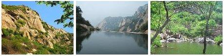 幽谷神潭 幽谷神潭 國家3A級景區。位于北京市懷柔區懷北鎮椴樹嶺村北,云蒙山南麓,距市區75公里。111國道從景區門前通過,從北京東直門乘936路公交車,轉至豐寧的長途車或在前門北京旅游集散中心乘旅游專線車都可到達。屬山岳型自然風景區。1994年8月向游人開放。 幽谷神潭自然風景區總面積約6平方公里,谷長5公里。集“奇、幽、秀、美”于一體。景區大門有“幽谷神潭”4個大字,為著名書法家啟功先生所書。由于奇特的山體構造,并經過多年的風雨侵蝕,景區內形成了通天門、雷劈石、映月潭、子母龜、石人峰、蘑菇崖等景觀。在景區入口處有一方巨石,橫臥于兩塊直立的青石之上,這就是通天門。在距通天門約一公里處有一塊高約3米,周長10余米的白褐色巨石,巨石頂部有一道由石頂直通石底的裂縫,寬約8公分,這就是景區一大奇觀——雷劈石。解放前此地曾建有龍王廟。傳說古代大旱時,農民抬著整豬、整羊到龍王廟求雨。有一年大旱,龍王命雷公電母興云造雨,雷劈石就是雷公電母在和旱魃作戰時,用利劍劈倒旱魃,也同時把這塊巨石劈成兩半。在南側山峰的一處僻靜地帶,溪流匯成一處深情潭,石壁上刻有“深情似水”四個大字。再經過聞泉知魚潭、鷹嘴峰、映月潭等地,又有一塊巨石壁立于路旁,刻有篆書“洞天勝境”四字,此石為飛瀑的天然屏障。飛瀑由40余米高的山谷上飛瀉而下,在底部形成水面約100平方米、水深8米的深潭,相傳有一神龜鎮于潭底沙石之中,專司陰晴雨雪之事,早年間,方圓數百里百姓皆來求雨,每求必應,故曰“神潭”。這也是景區名字的來歷之一。每年4月份舉辦“植樹游園”活動;7-9月份舉辦“幽谷穿越”活動;10月份舉辦“金秋采摘”活動。 幽谷神潭必賞景觀 通天門、雷劈石、映月潭、子母龜、石人峰、蘑菇崖等景觀。