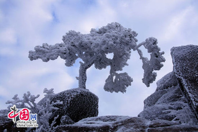 冬游黃山,觀絕妙霧凇。姚育青攝 觀絕妙霧凇 “一夜寒風(fēng)起,萬樹銀花開”。百里黃山,一夜之間裝扮成一片銀白,棵棵黃山松宛若玉枝垂掛,簇簇松針恰似銀菊怒放,晶瑩多姿。霧凇、雨凇和冰掛等是冬游黃山的主要景觀之一,是冬天大自然送給人類的一道靚麗的風(fēng)景。 滿樹滿枝的冰掛、霧凇、雨凇,猶如珠簾長垂,遍布峰體,風(fēng)吹樹動,冰掛撞擊,萬籟有聲,宛如一曲曲動聽的音樂,和諧有節(jié),清脆悅耳。霧凇這時的黃山,“峰巖雪松,玉樹瓊花”猶如天上的廣寒宮,海中的珊瑚島。
