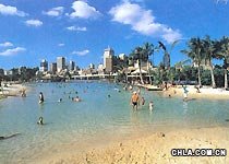 布里斯班有著迷人的自然風(fēng)光,多種多樣的動(dòng)植物生活在這里,特別是一些澳洲特產(chǎn)的動(dòng)物,與人類的關(guān)系十分親近。此外,布里斯班的人文景觀也很豐富,游人來(lái)到布里斯班,還可以感受到濃厚的文化藝術(shù)氣氛,這里會(huì)經(jīng)常上演上些大型歌舞劇及音樂會(huì),還有著名的世界級(jí)圖書館及美術(shù)館。 野生動(dòng)物園 野生動(dòng)物園是由龍柏樹袋熊保護(hù)區(qū)和澳大利亞羊毛樂園組成的。 龍柏保護(hù)區(qū)位于布里斯班西南11公里的地方,里面有80種以上的澳大利亞本土動(dòng)物及鳥類,其中最討人喜歡的就是可愛的樹袋熊——考拉,它們總是伸著胖胖的前臂抱住樹干,吃著桉樹葉,好奇地注視著游人。這里的鳥類也不怕人,那些五彩的雀鳥會(huì)飛到你的手心里吃食。 羊毛樂園位于布里斯班西北14公里處,游客在此可以參觀當(dāng)?shù)厝思粞蛎谋硌菀约凹徰蛎墓に嚕阋部梢杂H自嘗試著擠牛奶、喂袋鼠,還能抱著胖墩墩的考拉耍玩耍玩,可開心呢。 南岸公園 庫(kù)塔山植物園 庫(kù)塔山植物園(Mt Coot-tha Botanic Gardens)位于布里斯班以西8公里處,園內(nèi)專門培養(yǎng)各種熱帶及亞熱帶植物。此外,這里還有澳大利亞最大的天文館——湯姆爵士天文館。從庫(kù)塔山了望臺(tái)可以遠(yuǎn)眺布里斯本與摩爾頓灣的美麗景色。