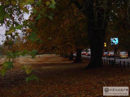 第一次見到海德公園是在深秋季節(jié),那時(shí)我住在另一個(gè)城市。因?yàn)橄胩颖芮镆獾氖捤骱椭苋盏墓录牛苣┍銇韨惗赜^光。