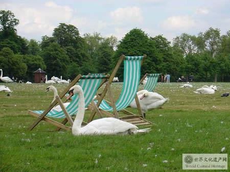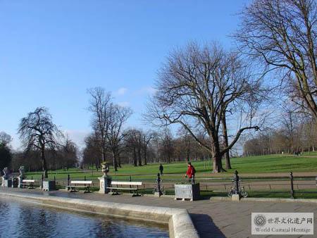 九曲湖穿園而過,夾岸的林蔭里棲息著許多種鳥類,河邊還有一個(gè)皮特。潘 黑色的小雕像。再往前走有一個(gè)卡羅琳王后的小畫廊,里面常舉辦一些光怪陸離的當(dāng)代藝術(shù)作品展,我非常反感這里的展覽,它和周圍的氣氛極不協(xié)調(diào)。