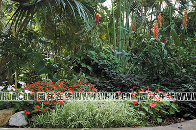 尼斯地處法國的南部,位于地中海沿岸。它三面環山,一面臨海,有著7500米長的海岸線,是一個氣候宜人、風景秀麗的地方,為法國第二大旅游城市。這里光照充足,年平均日照時間2640小時,年平均降雨量超過800毫米,由于群山的阻攔,使尼斯免受寒冷的北風侵襲,形成了冬暖夏涼的氣候特征,為典型的地中海式氣候。 尼斯的鳳凰公園地處尼斯城的入口處,斜對面就是尼斯國際機場。鳳凰公園占地7公頃,擁有植物2500種。此外園區內還有一些展示鸚鵡、貓頭鷹等動物的館舍,因此可以說鳳凰公園也是一個動植物公園。公園的布局簡潔,主題鮮明,全園以展覽溫室為重點進行景點及服務設施的設置。該溫室位于公園的最末端,與大門形成對景,并形成了景觀的主軸線,在這條視覺軸線上依次安排了大型的湖面、噴泉、大草坪等公園主要的景點,溫室在大草坪和花境的映襯下顯得十分壯觀。由于整個視線上沒有任何遮擋,因此游人進入公園后就能清楚地看到遠處的溫室。園內主要道路呈圓形或半圓形,主軸線兩旁的地勢略有起伏,植物配置疏密有致,色彩明快。漫步在園中,阿茲臺克人的金字塔形下沉式花園、花境、疏林、草坪、棕櫚樹、噴水池、瀑布、溪流,在地中海所特有的蔚藍天空的映襯下,令人賞心悅目、心曠神怡。 鳳凰公園展覽溫室的外觀呈鉆石形,在陽光的照射下熠熠生輝。溫室最高處25米,面積7000平方米,是世界上最大的溫室單體建筑之一,溫室內部分為7個展區,展示的內容分別為熱帶雨林、食蟲植物、樹蕨、珍稀蘭花及鳳梨,昆蟲及水族館,路易斯安娜館、鬣蜥館、澳大利亞館、地中海植物館等。溫室內利用堆地形、造假山等手法營造出瀑布、水池、溪流等景觀,也為不同的植物創造了良好的小氣候環境。其中最吸引人的是主題為“熱帶夢想”的熱帶雨林館,該展區位于溫室的中心部位并延伸至出入口,這里展出了棕櫚科、芭蕉科、豆科、桑科等典型的熱帶植物,高大的喬木與灌木、草本、地被、藤蔓植物組成了層次豐富的熱帶叢林景觀,充分體現了植物的多樣性。公園在進行植物配置時也十分注重植物的觀賞性,運用天南星科、錦葵科、爵床科、姜科、秋海棠科、石蒜科等美麗的觀葉、觀花植物,使溫室內的色彩富于變化,給人以視覺上的享受。 此外園內還設有兒童游樂場、露天劇場、各類動物館舍、科普館、音樂噴泉等設施,全園還安裝了音樂廣播系統,這也許是為了降低來自對面飛機場的噪音吧! 每年公園內還會舉辦各項季節性的主題展覽和針對孩子的活動,確保滿足各個年齡層游客的需求,人們在享受美麗園景的同時又能接受動、植物學知識的熏陶。