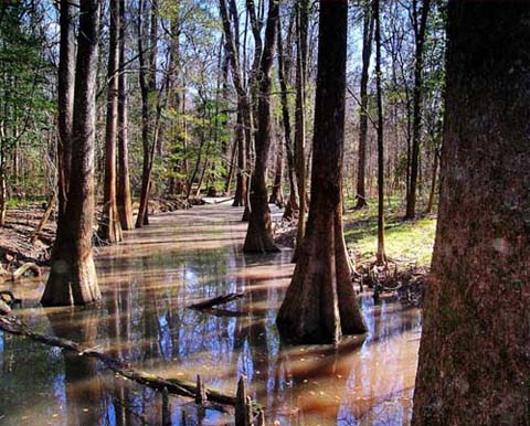 美國坎格瑞沼澤國家公園 坎格瑞沼澤國家公園位于美國南卡羅萊那州,公園的名字里雖然有沼澤二字,其實沖蝕平原是比較正確而專業的地形描述。園內的水位有濕季和干季的變化,并不是一年四季都泡在水里。雨季時公園內平均每年會淹十次左右的水,每次的大雨沖積都帶來豐富的養分,滋養著這里古老的硬木森林。這里是北美最大的原生硬木森林區,1976年成為國家紀念園區保護,2003年又再升格為國家公園。因此這片原生硬木林及其獨特的生態系得以保存。