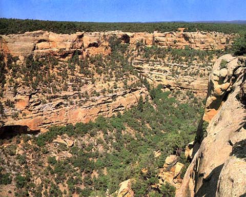 美國弗德臺地國家公園 弗德臺地國家公園位于美國科羅拉多州西南部蒙特蘇馬山谷和曼科斯山谷之間,占地面積達21074公頃。1888年12月發現,1906年建為國家公園。為北美印第安人史前居住地遺跡保留地。園內留有幾百個1000多年前聚居印第安人的建筑物遺跡,共有古屋500余所。迄今已有3800個史前遺跡點與世人見面,其中600多處屬于圣胡安盆地的阿納薩扎伊文化。其中最大的“峭壁宮殿”約建于11世紀,有200多個房間,分兩層、3層或4層等幾種規格,可以看出當年的建筑規模與工藝技巧。在“峭壁宮殿”的外緣,蓋有許多部族內部進行社交活動和敬神用的圓形地穴和一些供炊事與家務用的露天庭院!霸粕贾荨笔堑诙蠼ㄖz址,約建于12世紀,有100多個房間。此外,還有專用于敬神的太陽金字塔以及陽臺屋、雪松塔、落日屋、方塔屋、回音室、長屋等500余所。在峽谷兩側坡地辟有梯田,在谷底建有水池,在一些廢墟上還發現了壁畫。公園總部的博物館內收藏了這個部族的手工藝品,如動物造型、幾何花紋的灰陶、各種造型精巧的黑白花紋陶器,還有一些寶石、綠松石等工藝制品。