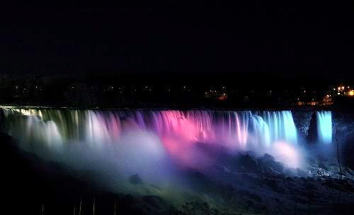 陸上全方位觀賞 來到尼亞加拉瀑布處,人們可以從多種角度欣賞其風采。那里有著名的“前景觀望臺”,巍峨聳立。高達86米。人們只要肯用力攀登,便可將尼亞加拉大瀑布一覽無余。如果想仰視大瀑布傾瀉的景色,可以沿著山邊崎嘔小路,前往“風巖”,那就算站在了大瀑布的腳下。翹首仰望,便會看見大瀑布以鋪天蓋地的磅礴氣勢飛流直下,不禁使人心里涌起一股激情,與大自然產生共鳴。 另外為了讓游客更好地觀看尼亞加拉瀑布的全景,美、加兩國的境內錯落有致地設有四座高大的瞭望塔,三個在加拿大境內,一個在美國境內。距離馬里瀑布最近的一座是施格林瞭望塔(Skylon Tower,5200 Robinson Street),它的名字里含有“天塔”的意思,是加拿大CP旅館系統最高的塔樓,高達百余米。通往塔頂瞭望臺的電梯一半鑲著玻璃,可以在電梯升降的同時欣賞風景。塔里設有劇院和游戲場所,最上層是旋轉餐廳。不遠處的恩淇朗瞭望塔高達150米,呈錐形,直插云霄。登塔俯瞰,馬蹄瀑布猶如一幅巨大的凹弧形銀幕,又像一個深不可測的巨大洞穴,三面懸流,波瀾壯闊。 美國一側的奧尼達瞭望塔僅有三分之一高出地面,在河畔抬頭正視著美國瀑布。正面望去,美國瀑布像一面白色紗幔,倒懸于藍天白云、青山碧水之間,水波層層疊疊,傾注河底,化出一片迷朦。 乘“霧中少女” 在尼亞加拉瀑布,為了讓游客充分觀賞瀑布并領略瀑布的磅礴氣勢,這里準備了各種豐富多彩的活動,美、加兩國在河的兩岸個建造了一個碼頭,配備了4艘游船,每艘能載客數百人,其中“霧中少女”(Maid of the Mist)號游船最為有名。自1846年開始,這艘游船著名的便日復一日、年復一年地引領游客與瀑布親密接觸。 游船取名“霧中少女”也有來歷,據說300年前,居住在當地的印第安人震懾于自然的威力,于每年收獲季節時選一天,集合全村少女,酋長站立中央,引弓對天放箭,箭尖下落,離哪位少女最近,這一少女即被選為代表,被送上獨木舟,舟中裝滿谷物水果,從上游順著激湍沖下,墜入飛瀑中,于是人們都說尼亞加拉瀑布的霧氣,便是少女的化身。 “霧中少女”的乘船碼頭在美國瀑布的正面,購票后先乘坐纜車到河邊,然后每人領取一件雨衣。游船先經過美國瀑布,然后開往加拿大瀑布,在這里可以很真切地感受到瀑布狂瀉直下而產生的巨大水汽與浪花,水勢洶涌有如千軍萬馬,驚心動魄。大瀑布總是敞開胸懷歡迎所有的來訪者,游船只是略略靠近瀑布,便被落下的水浪沖擊的大幅擺動,暴風雨般的水珠會劈頭蓋臉地砸來,此時再好的雨衣也無法抵御大瀑布的盛情,所有的乘客都會隨著雷鳴般的水聲興奮地歡呼起來。這與其說是觀賞瀑布,不如說是親身體驗瀑布。游船穿梭于瀑布激起的千萬層水汽中,從岸上看,真是如同“霧中少女”一般。 瀑布后之旅 另一個到訪尼亞加拉瀑布必去的景點是加拿大境內的“Journey Behind the Falls”(瀑布后之旅),這是由西尼克隧道改建的用來欣賞尼亞加拉瀑布的極佳的觀景點。在Table Rock House內的入口處領一件黃色的斗篷,然后搭乘電梯降到幾十米深的地下,沿著兩條隧道就可以來到突出的平臺上欣賞加拿大瀑布的正側面,仿佛置身于瀑布之中。在這個伸手即可觸摸到瀑布的地方,瀑布的雄偉英姿離游客只有咫尺之遙,而瀑布的波瀾壯闊更是令游客無不嘆為觀止。 高空觀賞 現在,尼亞加拉瀑布公園還開設了直升機和熱氣球的游覽項目,游客可以搭乘直升飛機或熱氣球從空中觀看大瀑布的壯麗景色,從幾百米上空俯視伊利湖水傾注到安大略湖。從高空俯視尼亞加拉瀑布,感覺和地面真的很不一樣。你可以清楚看到一條河把安大略湖和伊利湖連通起來,水流從地勢較高的那個湖中涌出,變作瀑布飛流直下,匯入深而窄的河谷,宛若雄勁流暢的書法線條。飛機螺旋槳聲、熱氣球火苗的呼呼聲和大瀑布的跌水聲共鳴,觀光者的血液也跟著激流的轟鳴而沸騰。這時,大瀑布不再是一個單一的景點,它和湖、河、山、峽融為一體,飛動在秋日葉色微紅的樹林中,水綠、樹紅、浪白,著實很美。但是,直升飛機和熱氣球的價格都很貴,這讓許多游客不得不望而卻步。也有許多游客選擇了比較經濟實惠的西班牙式高空纜車(the Spanish Whirlpool Aero Car),也可以享受到與前兩種方式相似的觀賞感受,纜繩大約有500米長。 夜觀大瀑布 尼亞加拉瀑布在白天看波瀾壯闊,入夜后則是另一番景象。在紅日西墜時,珠幔般的水花,在夕陽映照下,七彩虹霓,燦然入目。當夜幕降臨之際,瀑布水色漸顯灰黯,此時圍繞著瀑布周圍的巨型聚光燈,突然齊放綠光,使原已灰黯的瀑布,頓時大放光彩,變得晶瑩透澈,熠熠生輝。尤其從塔頂望出去,到處是五顏六色的燈光,瀑布的景象比白天更加多姿多彩。在夏季的每個星期五,尼亞加拉瀑布上空還有焰火表演。 美國瀑布和新娘婚紗瀑布在晚上用不同色彩的燈光照去時,大小瀑布的顏色不同,煞是好看。馬蹄瀑布在晚上的水流較小,因此浪花和水氣不大,燈光照去,看得比白天更清晰,猶如萬斛珠璣,自天傾瀉,此時水勢的洶涌,水珠的跳躍,水氣的彌漾,呈現出不同于白天雄偉的神態。隨著燈光顏色的變換,水色由白轉為淺紅,由淺紅轉為淺藍,由淺藍轉為翠綠,五彩繽紛,多姿奇麗,迷離神奇。瀑布原為自然景觀,現加上人工點綴,其五光十色,千變萬化,使整個瀑布浸潤在一種縹緲迷離的夢境中,也成為了世界名瀑中獨一無二的
