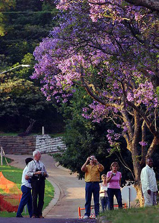 吉爾的生日 我們在比勒陀利亞逗留期間恰好碰上吉爾的生日,吉爾做夢也不會想到她的第30個生日會在南非度過。安迪則想盡辦法讓她的這個生日變得難忘,生日的開始是在一個叫迪懷特的地方和一些野生動物保護組織一同探險。在開車離開比勒陀利亞大概一個小時之后,除了印度豹,吉爾還看到各種各樣奇怪的動物——野狗、鬣狗、禿鷹還有一些蜜獾。這次旅行真是豐富并且精彩,我們在如此接近的距離觀察了印度豹,夸張點說簡直就是鼻子頂鼻子了。 到了下午,我們和朋友一起開車去到了約翰內斯堡參觀南非種族隔離博物館,這是一個明了的記錄了那段歲月的博物館。整個參觀過程的一開始是觀看記錄南非種族隔離之前的歷史背景的影片,整個影片始終沉浸在濃郁的悲傷氣氛中,以至于吉爾在結束參觀之后久久沒能從那種情緒中走出來。按照以往的生日傳統,我們找了一家亞洲風味的餐廳,然后把我們每個人的肚子撐到塞不下東西為止。 德拉肯斯堡的暴風雪 隨后我們依依不舍地離開了朋友的家,搭乘巴士開始了下一段行程。我們決定要翻越撒尼山口,那是在德拉肯斯堡的一個最險要的山口,租來的四輪驅動越野車帶著向導和我們一路翻越萊索托王國。我們的向導準確地為我們指出這段山路連續的28個發卡彎。我們最終順利地翻越了山口,那里的海拔有10000英尺。萊索托雖然完全被南非所包圍,但是卻保持了其特有的風俗,我們拜訪了山間其中一所很小的、圓形的、曾經有人居住過的小屋。這里是牧羊人在暖和的月份里所用的臨時居所。我們的向導,一個德拉肯斯堡的狂熱愛好者,向我們介紹了這里的地質形成狀況和當地火山爆發時的狀況。我們在一塊由火山噴發所形成的絕壁邊上用了午餐,在那里還可以看到三個星期以前的暴風雪所留下的痕跡。 德班和圣露西亞 我們的下一站是德班,它是南非東海岸的一個大城市,它就像是印度和美洲傳統的一個大熔爐一樣。我們只在那里待了一天,德班是南非的娛樂業中心,我們在那里購物、在沙灘上看別人沖浪。我們所住賓館的服務生幫我們租了一輛車去圣露西亞,在這里,我們必須習慣靠馬路的左側行駛。 由于其豐富的生態系統,圣露西亞是聯合國教科文組織規定的世界文化遺產之一。這一地區包含了海岸生態系統、淺海以及內陸淡水湖生態系統。這里有許多只在圣露西亞“避難所”才有的鳥類和動物。但是不幸的是,和我們一起而來的大風天氣讓我們未能看到很多的野生動物。我們本可以進行一次不用氧氣的淺海潛水的,但是由于海面風浪太大,我們只能改在巖石基質的池塘中進行。 現在回想起來,其實我們仍沒有給自己充足的時間好好的在南非看看。盡管如此,我們在這里見到了我們的朋友,這讓我們都非常高興,他們都是最好的主人。