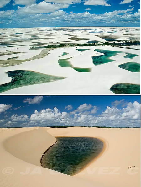 提及沙漠,你腦中一閃而過的,往往多是“廣袤”,“空寂”這樣的詞匯。說它迷人,也許會覺得不大可能,下面要介紹的這十大沙漠,它們獨特到令人稱絕的美景,定將重構(gòu)你對沙漠的認(rèn)識。 1、被雪覆蓋的沙漠:塔克拉瑪干沙漠 塔克拉瑪干沙漠是世界上大型沙漠俱樂部成員之一,從面積上來看,它在眾多非極地沙漠中位居第15位。它位于塔里木盆地,沙漠覆蓋面積為270000平方公里。塔克拉瑪干沙漠的北緣和南緣都有絲綢之路的支線穿過。 2008年,這片“中國沙漠之最”經(jīng)歷了有史以來最大的降雪和最低的氣溫,雪連降了11天。整片沙漠都被冰雪覆蓋,在沙漠中這樣大規(guī)模的降雪還是非常罕見的。 2、擁有藍湖的沙漠:巴西的拉克依斯-馬拉赫塞斯 巴西擁有世界上最大的熱帶雨林,全球30%的淡水資源都儲備在這。在這樣一個國家我們居然也能找到沙漠,實在難以置信。拉克依斯-馬拉赫塞斯國家公園位于巴西北部的馬倫容州,占地面積300平方公里,公園內(nèi)遍布雪白的沙丘和深藍的湖水,堪稱世界一絕。 但為什么沙漠中又會出現(xiàn)藍湖呢?這片沙漠與眾不同之處就在它的降雨量,雖然貌似沙漠,但其年降雨量可達1600毫米,是撒哈拉沙漠的300倍,雨水注滿了沙丘間的坑坑洼洼,形成清澈的藍湖。在干旱季節(jié),湖水完全蒸發(fā)掉了。而雨季過后,湖中卻不乏各種各樣的魚類、龜和蚌類,好像它們一直就沒有離開過似的。對此有兩種假設(shè):一種說法是,它們的蛋或卵就埋在沙子下面,雨季來了,就孵化而出;另一種說法,是“不辭辛苦”的鳥類將它們的蛋或是卵一趟趟地帶過來的。 3、世界上最大的鹽沙漠:玻利維亞的烏尤尼鹽原 鹽原可以算是玻利維亞的標(biāo)志性景觀了。位處高原之中,沙漠廣闊且近乎平坦,與天空渾然一體。沙漠中,有幾個湖,由于各種礦物質(zhì)的作用,湖水呈現(xiàn)出奇怪的顏色。 四萬年以前,這片地區(qū)曾是史前巨湖明清湖的一部分。之后,湖水干涸,剩下兩個大咸水湖:普波湖與烏魯烏魯湖,以及兩大鹽沙漠,即烏尤尼鹽原與科伊帕薩鹽原,其中前者較大。從面積上看,烏尤尼鹽原是美國博納維爾鹽灘的25倍。據(jù)估計,這里的鹽量大100億噸,目前,每年的開采量不到25000噸。