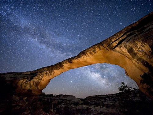 猶他州· 國家天然橋公園歐瓦巧橋夜景。