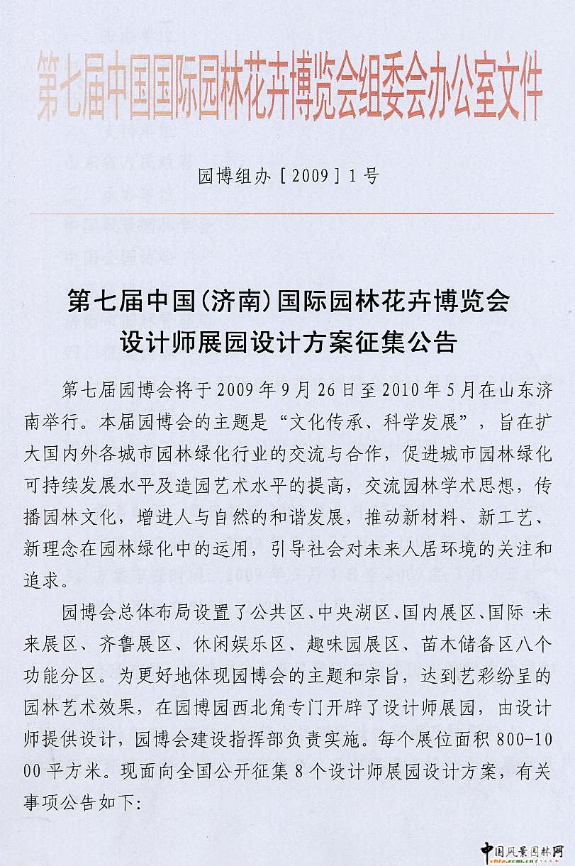 第七屆中國(濟南)國際園林花卉博覽會設計師展園設計方案征集公告