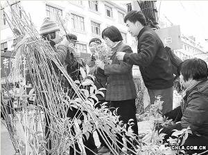 農民在金石橋集市搶購苗木的情景