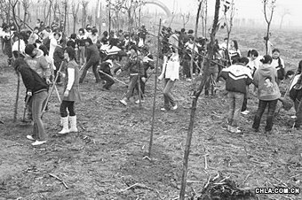 學生被組織參加植樹美化城市環(huán)境