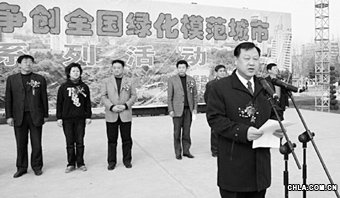 市領(lǐng)導在一次綠化活動上作動員 資料圖片