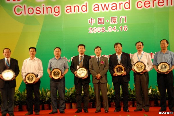 會上,住房和城鄉建設部城建司副司長陳蓁蓁代表住房和城鄉建設部和第六屆中國國際園林花卉博覽會組委會宣布了表揚通告及評獎結果。此屆園博會設有城市組織獎、突出貢獻獎、先進集體、先進工作者等獎項,住房和城鄉建設部副部長、園博會組委會主任仇保興、福建省副省長蘇增添、廈門市市長、園博會組委會主任劉賜貴、城建司副司長、園博會組委會副主任陳蓁蓁、住房和城鄉建設部城建司副巡視員曹南燕、中國公園協會會長柳尚華、中國風景園林學會副理事長張樹林、中國風景園林學會副理事長任春秀等頒獎嘉賓給獲獎城市、先進集體以及先進個人代表頒獎。