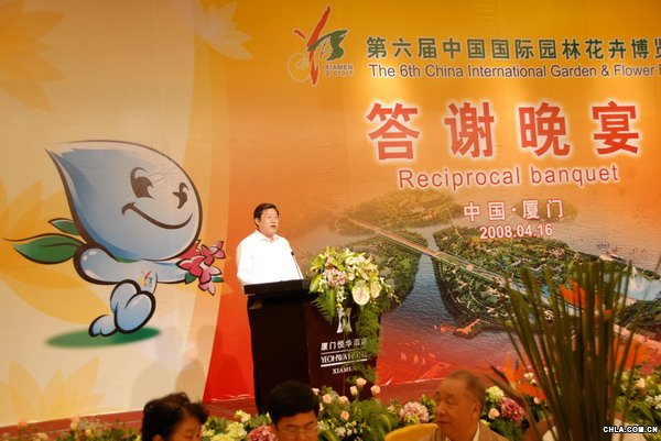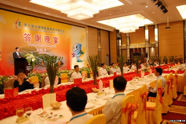 會后,廈門市政府、廈門市政園林管理局在廈門悅華酒店舉行答謝晚宴。答謝晚宴由住房和城鄉建設部城建司副司長、園博會組委會副主任陳蓁蓁主持,廈門市市委副書記陳柄發致辭。陳柄發指出,“第六屆園博會已經結束了,但是,廈門園博園中上演的永不落幕的園林盛會將會繼續下去。我們將結合杏林灣新城區的建設,繼續加大投入、繼續精心策劃和運作、繼續完善管理服務,努力使廈門園博園成為一座高規格、高品質、永久性的生態旅游度假區。我們真誠期待各位領導、各位嘉賓再次來到廈門,再次來看園博園!”。濟南市市長張建國在晚宴致辭中作了表態,“濟南作為下屆園博會的承辦方,會從上屆園博會汲取寶貴經驗,爭取第七屆中國國際園林花卉博覽會的圓滿成功。”